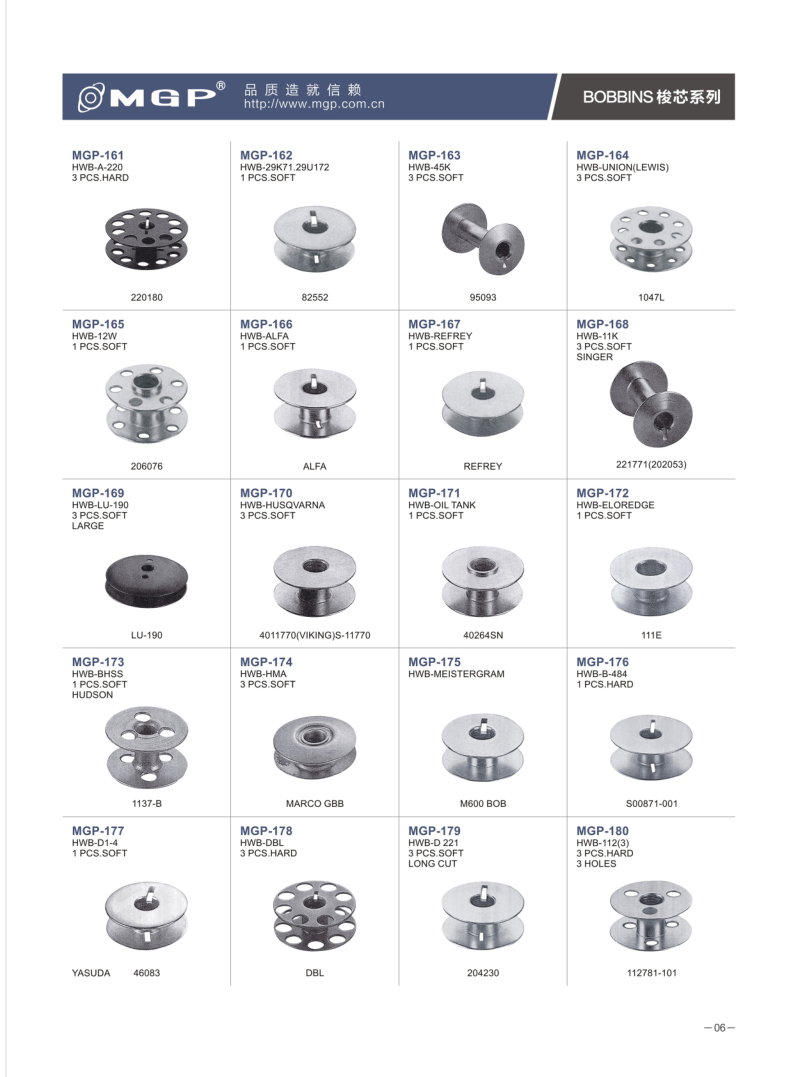 寧波市宏威機(jī)械制造有限公司2023-08-08寧波市宏威機(jī)械制造有限公司 MGP品牌成立于1990年,總部位于浙江寧波。企業(yè)分為浙江寧波、浙江紹興、河北、三大生產(chǎn)基地。全產(chǎn)業(yè)鏈自主生產(chǎn)的全產(chǎn)業(yè)鏈。是國(guó)內(nèi)較大的梭芯生產(chǎn)基地和縫紉機(jī)配件的企業(yè)之一。是我國(guó)縫配件梭芯、梭殼縫配件出口量較大企業(yè)。MGP品牌產(chǎn)品與各大整機(jī)公司配套,并銷(xiāo)售80多個(gè)地區(qū),深受客戶(hù)信賴(lài)。